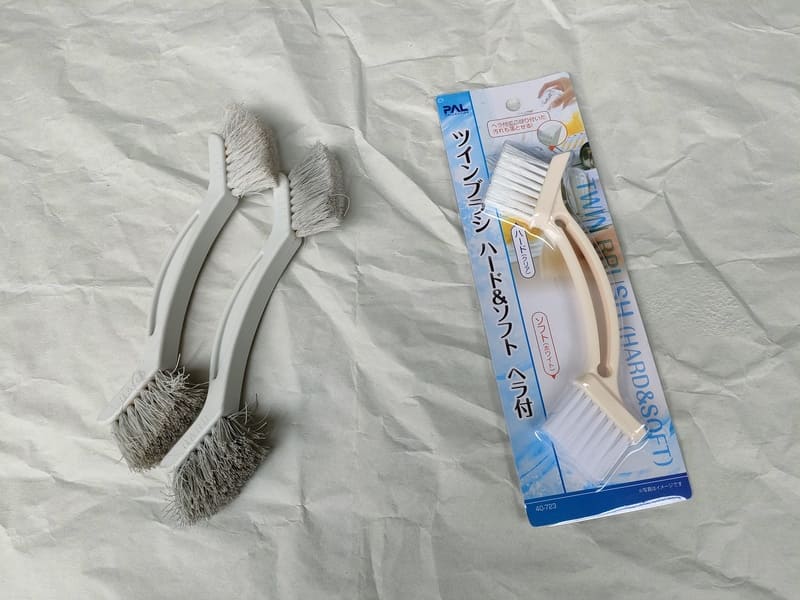 100均のツインブラシがいいです。消耗品ですので数本持っておきましょう。空室ではベランダの排水のスミにも使い勝手がいいです。