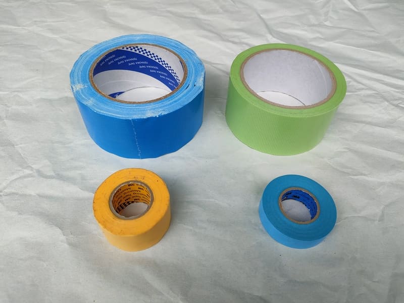布テープ、養生テープ、マスキングテープの3種類あると便利です。布が一番強く、マスキングが弱いので、使いたい場所と用途によって使い分けます。