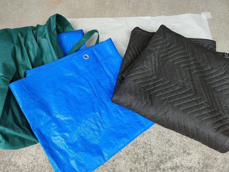 在宅の場合は荷物を置く場所、エアコン清掃の養生と必須です。リビングの絨毯の上とかにはブルーシートよりもクッションマットの方が印象がいいです。